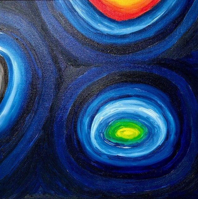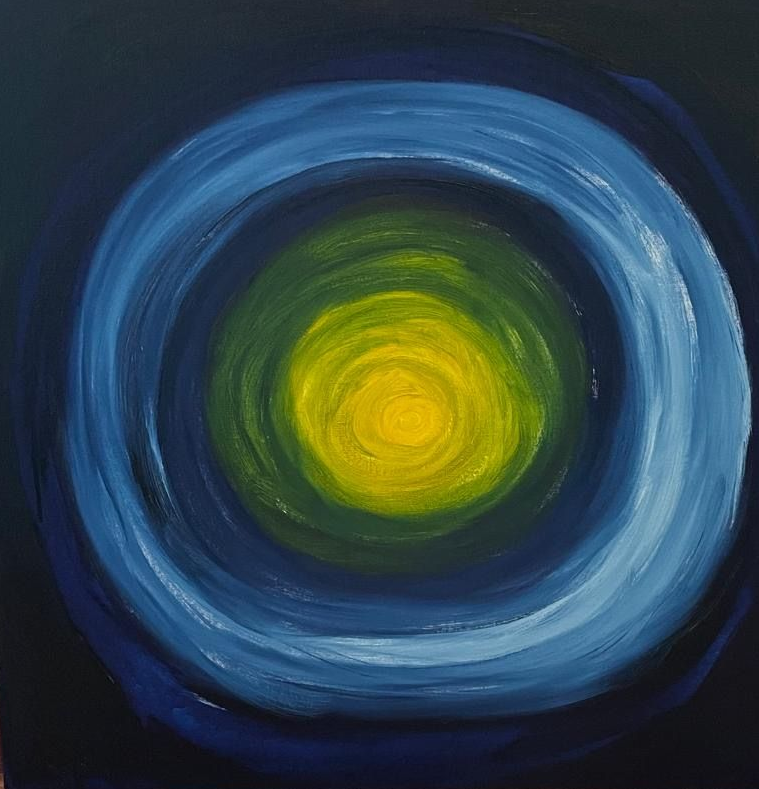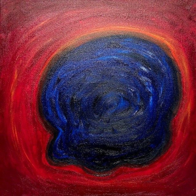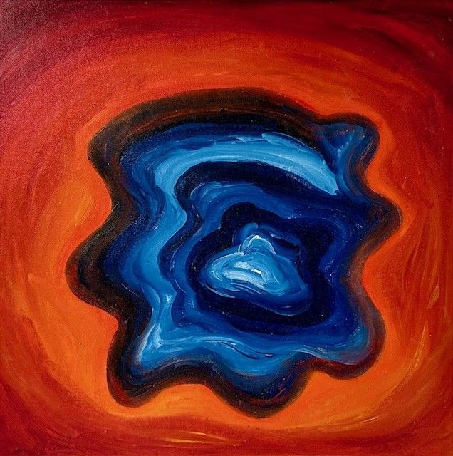 De kleuren spelen een sleutelrol. Blauwen roepen stilte en rust op, roden en oranje tinten doen denken aan warmte, energie of transformatie, terwijl geel vaak symbool staat voor hoop en licht. Kleur is voor mij niet slechts esthetisch, maar een expressief middel dat emoties en innerlijke ervaringen zichtbaar maakt. Soms ontstaan er herkenbare vormen of gezichten. Deze zijn niet gepland, maar groeien mee met het schilderproces. Daardoor kunnen mijn werken gevoelens oproepen die variëren van dualiteit of spanning tot hoop en vertrouwen.